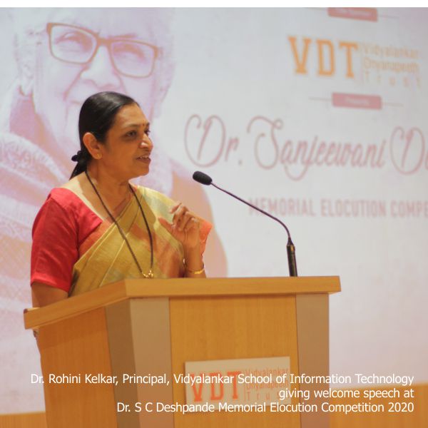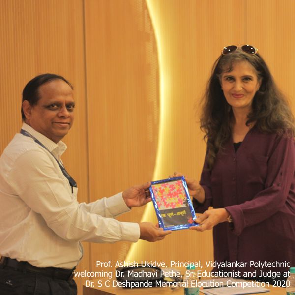 As a tribute to the memory of Dr. Sanjeewani Deshpande, who played a pivotal role in establishing Vidyalankar, and whose passion for language and literature is legendary, an Annual Inter-Collegiate Elocution Competition is organized for students. The prestigious event inspires students from across various colleges to exhibit their speaking abilities, communication skills and helps develop a reading culture among them.